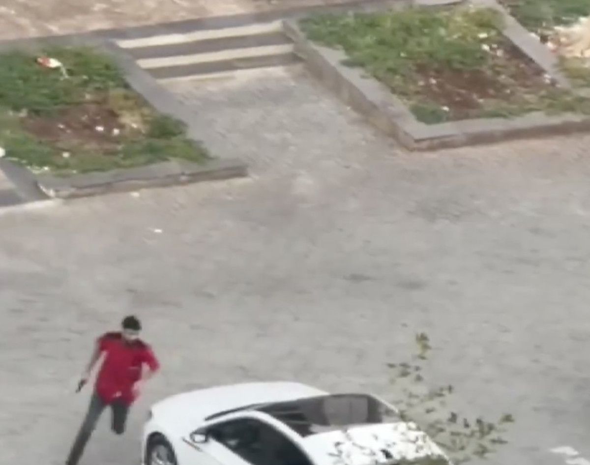 Taraflardan birinin elindeki silahı ateşlediği ve aracına binerek olay yerinden kaçtığı anların görüntüsü ortaya çıktı.