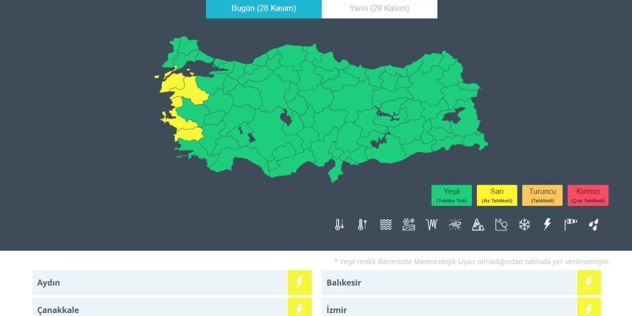 Tehlikeli hava dalgası için İzmir, Balıkesir, Çanakkale ve Aydın için sarı kodlu alarm verildi.