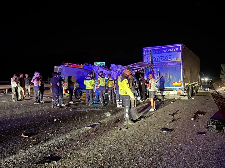 07 BCY 359 plakalı tarım işçilerini taşıyan minibüs, otoyolda önünde giden 42 ATL 24 dorse plakalı TIR’a arkadan çarptı.