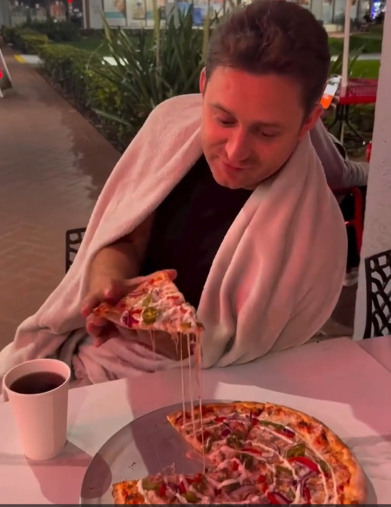 Bakımın ardından evsiz vatandaş, guzellik merkezindeki Türk restoranına götürüldü. Burada sıcak bir pizza ikramıyla karşılaştı ve uzun süredir düzgün bir öğün yemediği belirtilen adam, yemeğini köpeğiyle paylaşırken etrafındaki insanların ilgisini çekti.
